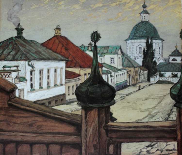 В 1912 году Добужинский совершил путешествие по русским провинциальным городам, посетив Курск, Воронеж, Нежин. Их быт и культура стали сюжетами многих картин и акварелей художника. Серия картин цикла «Русская провинция» экспонировалась в 1912 году на