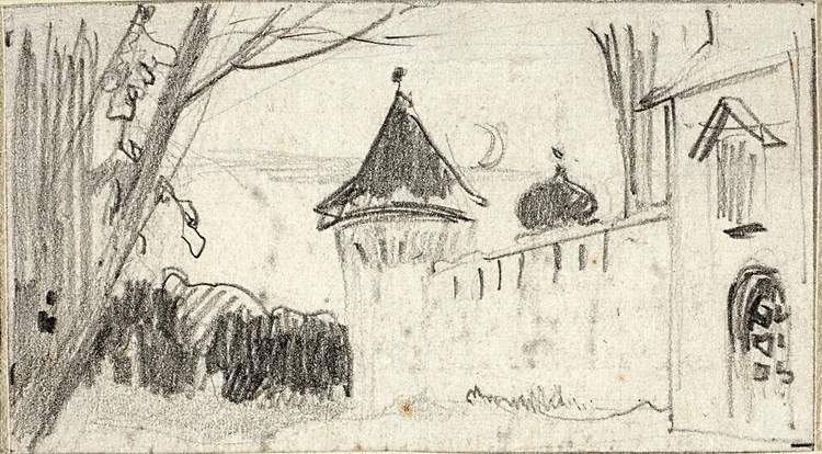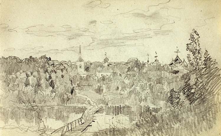 Рисунок, связанный с работой над картиной "Тихая обитель" (1890, ГТГ, инв. Ж-584).
