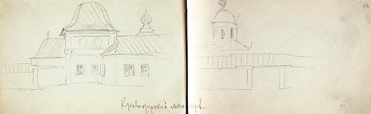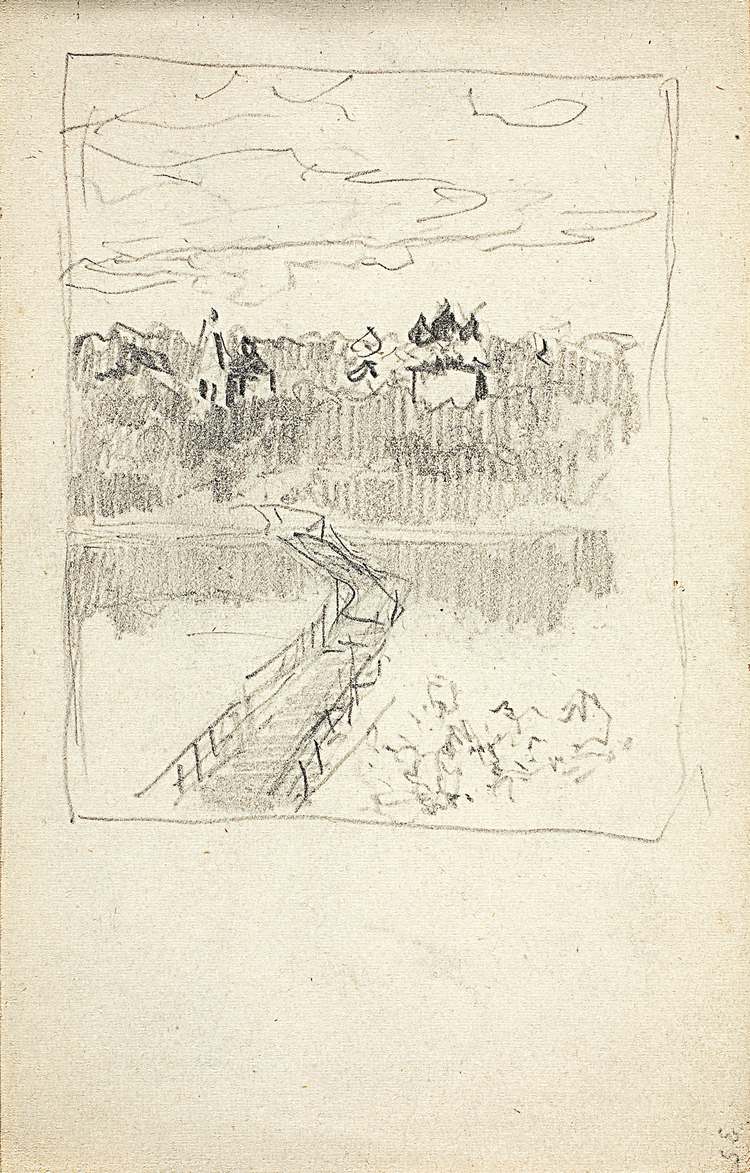 Лист из альбома. Рисунок, связанный с работой над картиной "Тихая обитель" (1890, ГТГ, инв. Ж-584)