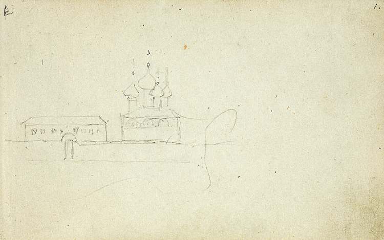 Набросок к картине "Тихая обитель". Лист из альбома. Рисунок, связанный с работой над картиной "Тихая обитель" (1890, ГТГ, инв. Ж-584).