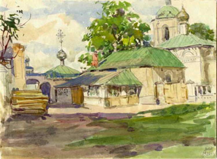 Алексеевский (или Алексеевскоо-Зачатьевский) женский монастырь с постройками и кладбищем в старинном московском урочище Чертолье  был снесен, чтобы освободить место  под строительство главного храма России - храма Христа Спасителя. Художник сделал зарисовку строений монастыря   перед его сносом. Преображенский собор монастыря был построен в 1634 году взамен деревянного храма, сгоревшего в пожаре 10 апреля 1629 года.  Самое раннее описание собора сделал А.Ф. Малиновский: «…посреди