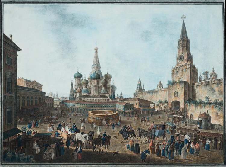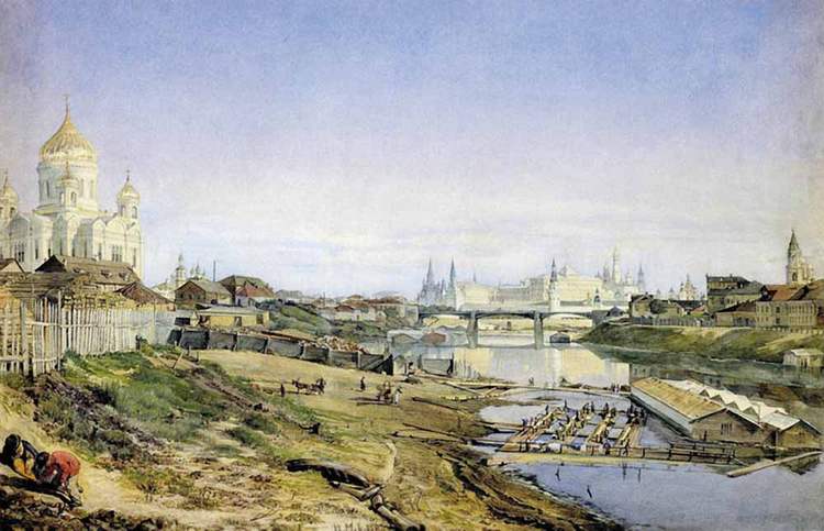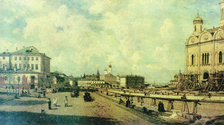Художник изобразил храм Христа Спасителя еще недостроенным. В дальнейшем во многих его видах Москвы присутствует храм Христа Спасителя.