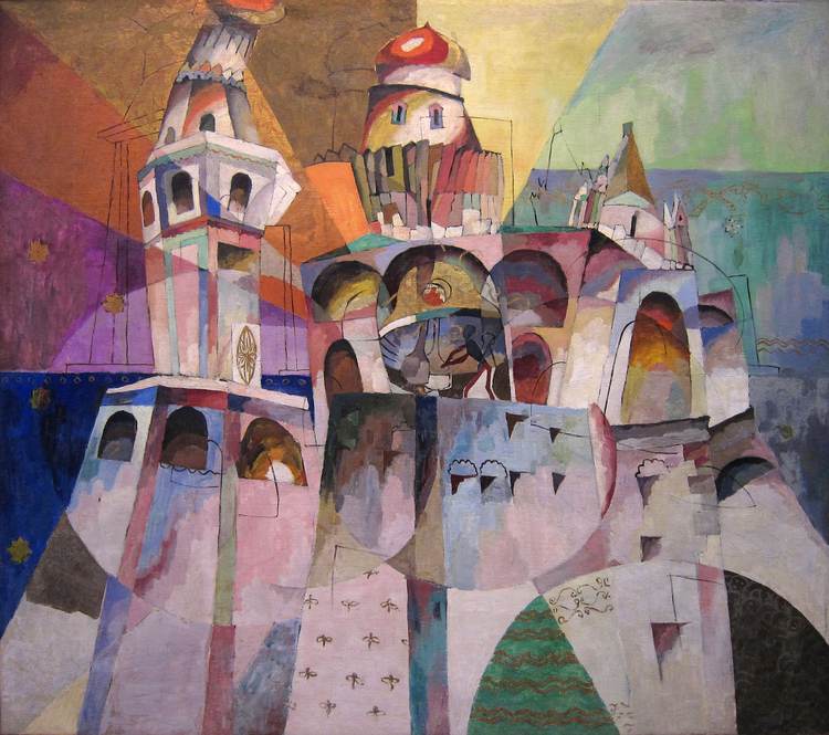 Лентулов, Аристарх Васильевич (1882 - 1943). 1913 г. Холст, масло, бумажные наклейки. 179 x 189.