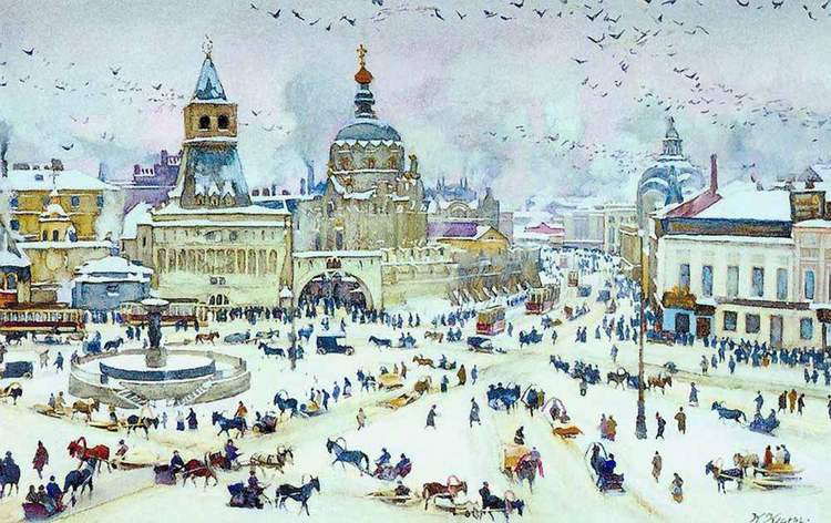 Москву не зря называют златоглавой, множество золотых куполов украшали Кремль, площади и улочки. Москва город древний, многие храмы были построены еще в средневековый период. До 1917 года в Москве и окраинах насчитывалось более 800 храмов и часовен, среди них 30 монастырей. Больше всего их было в историческом центре города - Кремле, Белом городе, Земляном городе, Замоскворечье и т.д. Множество уникальных храмов и монастырей было утрачено в советское время, что-то было изувечено до неузнаваемости, что-то взорвано. На полотнах русских художников запечатлена жизнь златоглавой Москвы от татаро-монгольского ига до революции, что-то нарисовано по представлениям, а что-то с натуры, тем самым сохранив для потомков виды некоторых храмов, ныне утраченных. В этой подборке представлены виды исторического центра столицы - храмы Кремля и ближайших к нему улиц, знаменитые храмы - собор Василия Блаженного, храм Христа Спасителя и др.