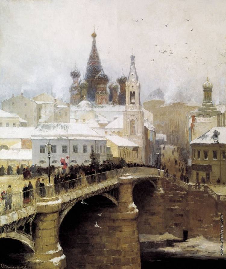 Вот что говорил о специфике своего многолетнего труда по воссозданию исторического облика древней Москвы сам художник: "Многие задают мне вопрос: почему я занялся старой Москвой и так увлекся ею? На это трудно ответить. Может быть потому, что я люблю все родное, народное, а старая Москва – народное творчество в жизни прошлого. Может быть, повлияло и то, что, очутившись в Москве в 1878 году после деревенской жизни в селе Быстрице – месте моей учительской деятельности, был поражен видом Москвы, конечно, главным образом Кремлем. Жил неподалеку от него, на Остоженке, и любимыми прогулками после работы было "кружение около Кремля"; я любовался его башнями, стенами и соборами. Но едва ли не главной причиной было то, что я вообще люблю науку: собирать материал, классифицировать факты, изучать их и т. д., в данном случае факты археологического значения. Все это, вероятно, и послужило главной причиной тому, что для всех, интересующихся искусством, на мне написано: "Старая Москва". www.art-catalog.ru