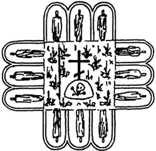 На схеме 2 Небесный Град показан по более древним изображениям, без стен. В середине Града — Лобное место с Крестом и Рай растений. Ворота Града сдвинуты друг к другу и «повалены» на четыре стороны (средневековый способ изображения фасадов). В воротах — 12 Апостолов Агнчих.