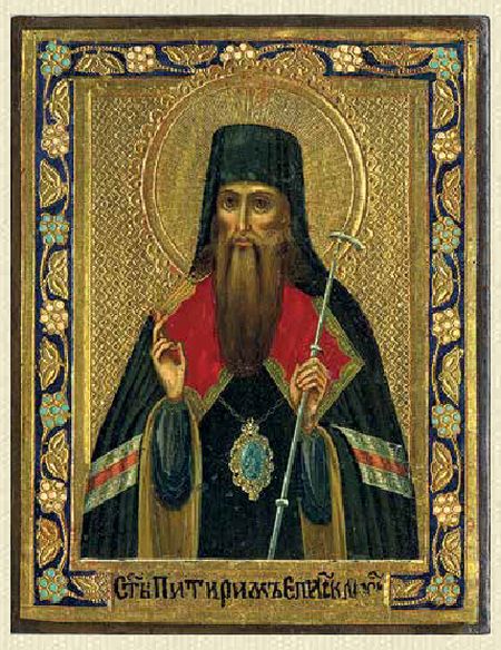 Скромный, воздержный, недопускавший ни малейших излишеств в отношении к себе, истинно благочестивый пастырь любил и употреблял все старание, чтобы в храмах Божиих везде и всюду было видно богатство и блеск. Он заботился о внешнем виде храма, чтобы самое здание вполне соответствовало своему назначению, заботился и о внутреннем украшении, дабы все, начиная от стен здания, достоинством и благолепием указывало, при первом входе в храм, что это жилище Бога Вышнего. Здесь уже для пастыря необходимо требовалось и облачение его самого в величественную и богатую ризницу. Но в отношении ко внутреннему благолепию храма самою первою его заботою было достоинство и правильность изображения ликов на святых иконах. При полном благоговении к святым иконам, видя в них изображения ликов Спасителя, Царицы небесной и святых Божиих, святитель Питирим не только в храмах, но и вне храмов не мог терпеть изображений на иконах ликов обезображенных, нисколько не соответствовавших величию и божественности лиц изображаемых. Благоговение к иконам и особая любовь к ним, как говорить предание, еще с детства возбудили в Питириме пламенное желание изучить живопись и заставили его самого заниматься писанием икон, особенно если принуждала к тому необходимость. Потому, как вполне вероятно передает предание, святитель, не видавши еще Тамбова, но заочно изучивши его вполне со всеми его религиозными нуждами, первее всего, во время пребывания в Москве, позаботился заготовить несколько хороших икон, которые и привез С собою. Не известно вполне, на сколько был живописцем сам святитель, но только он имел полное понятие о живописи, и сам ли написал он, или нет, но только приобрел для Тамбова иконы вполне достойной кисти, и премилосердому Господу угодно было сохранить их во всей целости для нашего времени. А именно, святитель привез с собою в Тамбов 7 святых икон: икону распятия Спасителя, икону Божией Матери Смоленской, две иконы Казанской Божией Матери, икону Божией Матери Девпетерувской, икону святителя Николая — находящияся в собор, и, по всей вероятности, икону Ильинско-Черниговской, а, по прославлению в Тамбове, Тамбовской Божией Матери, находящейся теперь в Уткинской церкви»[32].
