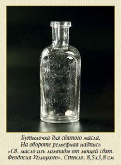 «Св. масло изъ лампады от мощей свят. Феодосiя Углiцкаого».