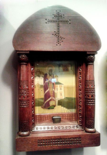 В XX веке, после революции, традиция «красных углов» – божниц в домах городских и сельских жителей, несмотря на постоянную борьбу с «религиозным дурманом», не была прервана. Так, в семье Глеба Александровича и Марфы Андреевны Покровских роль киота-божницы выполнял современный шкаф-стенка, где бережно и любовно сохранялись церковные святыни: иконы в окладах, лампады, кресты-мощевики и тельники, образки и т.д., многие из которых были переданы в дар Музею имени Андрея Рублева и сейчас представлены на выставке «Домашнее убранство иконы».