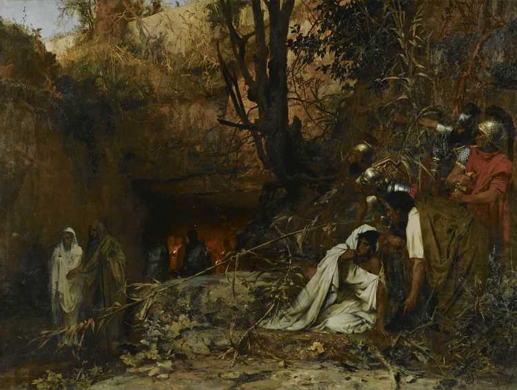 Гонители христиан у входа в катакомбы.