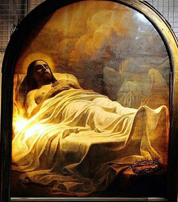 Карл Брюллов написал «Христа во гробе» для домовой часовни графа Адлерберга, генерал-губернатора Финляндии, который после убийства Александра II уехал в Германию, увезя с собой и картину. Полотно является так называемым «транспарантом» — оно написано на тонком холсте для рассмотрения на просвет, с подсветкой сзади. Долгое время полотно считалось утерянным. Картину случайно обнаружил в 2002 году живущий в Германии коллекционер Александр Певзнер. Полотно он увидел в православной общине в Брюсселе. Как картина из имения графа Адлерберга в Мюнхене попала в Брюссель, неизвестно. После того, как коллекционер привез картину для установления подлинности в Русский музей начинается многолетняя скандальная история с конфискацией полотна.