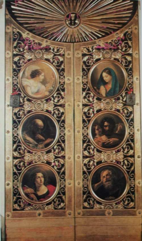 Медальоны работы К. Брюллова в Царских вратах Никольского храма в Риме