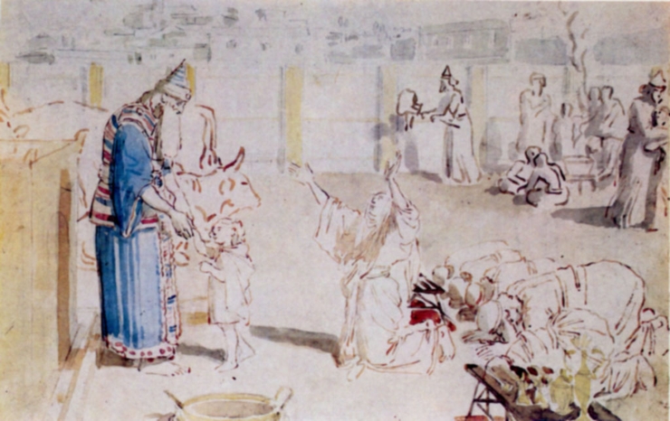 Народ израильский поклоняется Золотому тельцу.