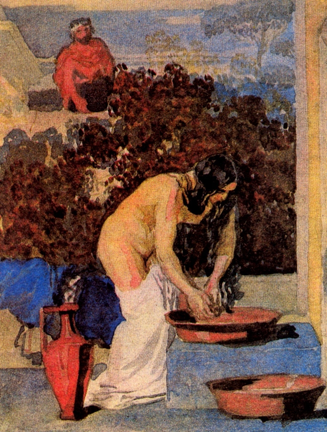 Однажды под вечер Давид, встав с постели, прогуливался на кровле царского дома и увидел с кровли купающуюся женщину; а та женщина была очень красива. И послал Давид разведать, кто эта женщина? И сказали ему: это Вирсавия, дочь Елиама, жена Урии Хеттеянина. Давид послал слуг взять ее; и она пришла к нему, и он спал с нею. Когда же она очистилась от нечистоты своей, возвратилась в дом свой. Вторая книга Царств