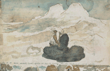 Вероятно, не стоит жалеть о том, что эскизы не были претворены в большие картины маслом, как художник замышлял, а остались в акварельных листах. Перевод в масло их отяжелил бы и огрубил. Прозрачность, трепетность акварели, легкая эскизная недоговоренность тут уместнее – это как бы дымка времени, сквозь которую видятся образы легендарного прошлого.