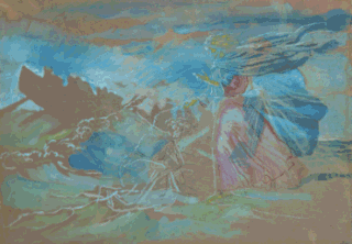 Всю жизнь Иванов изучал Библию, всю жизнь бился над загадкой Богочеловека, терпя многие неудачи, – иначе не могло и быть. Но все его срывы на этом пути искупаются гениальным эскизом “Хождение по водам”(31), написанным без предварительных вариантов и проб, быстро, огненно, в порыве вдохновения. В основе лежит рассказ евангелиста Матфея о том, как ученики, плывя ночью в лодке по волнующемуся морю, увидели Христа, идущего к ним по воде. Христос позвал Петра и велел идти ему навстречу; Петр пошел, но, испугавшись, начал тонуть; тогда Христос поддержал его словами: “Маловерный! зачем ты усомнился?”