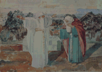 В противном случае становилась неосуществимой миссия художника, как Иванов ее понимал: содействие нравственному, духовному возрождению людей, – современников и тех, кто придет потом. Иванов не верил, что этой высокой задаче способно послужить простое зрелище того, как они сами или их предки пили, ели, работали, воевали, – оттого он так презирал жанровую живопись (по определению Стасова: “художество, берущее себе задачи из ежедневной будничной жизни”), называя ее “разменом сил на мелочи и вздоры”. Дать опору духовным поискам и упованиям, открыть глаза на “Царство Божие внутри нас” – вот какие цели он, великий утопист, считал достойным искусства. В “храме человечества” должна предстать история людей, заключивших некогда союз с Богом, – как они шли многотрудным путем, поднимаясь и падая, но храня путеводную нить надежды, ведущую сквозь века до настоящих дней с их “падшей нравственностью”. Мессианистские чаяния и были такой путеводной нитью, поэтому Иванов сделал их сквозной темой своего цикла – вслед за Штраусом, но в ином смысловом ракурсе. Эта внутренняя тема определила наряду с историческим еще один принцип отбора сюжетов – тех, где герои Библии, внимая некоему зову, расстаются с инерцией привычного бытия и пускаются в неизведанный путь. Иванов любил такие сюжеты, их затаенную символику. Авраам покидает землю свою и дом отца своего, чтобы идти, по обетованию Господа, в неведомую землю Ханаанскую. Моисей, стряхнув инерцию рабской доли, выводит из Египта свой погрязший в рабстве народ. Старый Илия, преодолевая безмерную усталость и жажду покоя смерти, поднимается по призыву ангела: “Встань, ешь и пей, ибо дальняя дорога перед тобою”. Отрок Давид, пасущий овец, безмятежно отдыхает под сенью дерева, – но перед ним появляется гонец пророка Самуила, и пастух оставляет свои стада и поля ради высокой и трудной доли. Иосиф, “обручник” Марии, найдя со своим семейством спасительное убежище в Египте, во сне слышит голос ангела: “Встань, возьми Младенца и Матерь Его, и иди в землю Израилеву”.