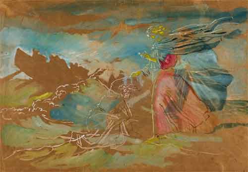 Бумага коричневая, акварель, белила, итальянский карандаш