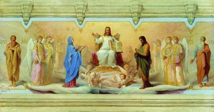 Н. А. Кошелев. Эскиз росписи храма Христа Спасителя. Холст, масло. 40х75.