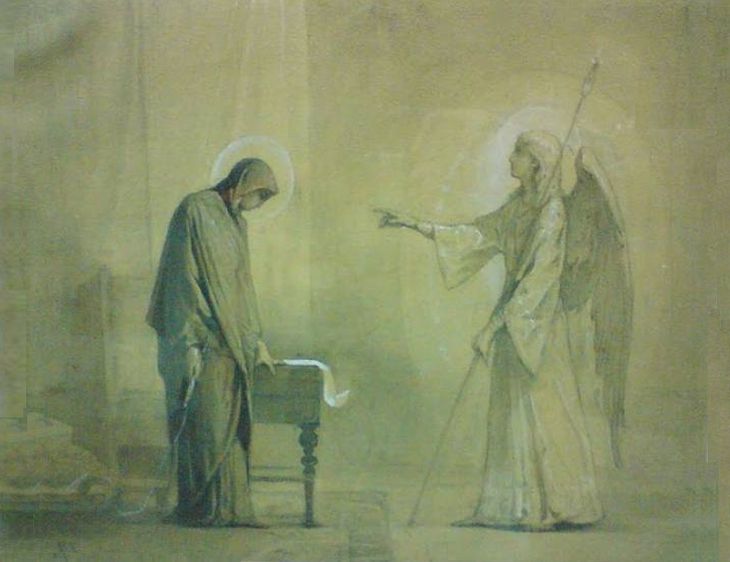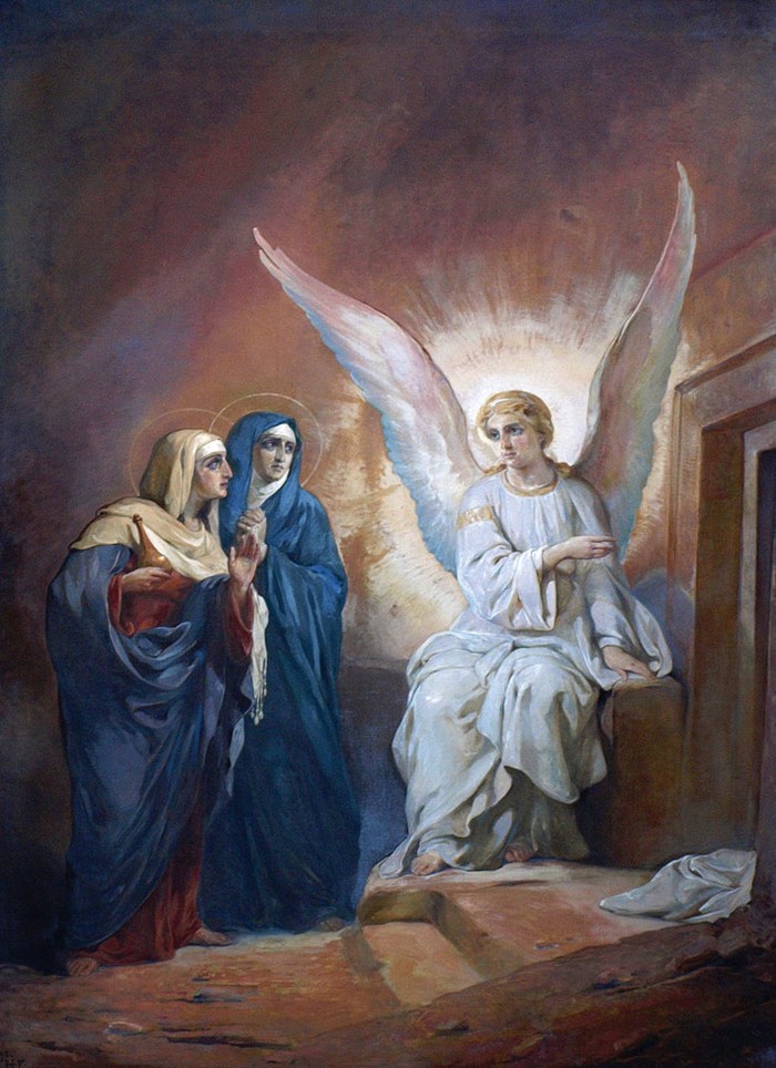 Жены-мироносицы, Мария Магдалина и Мария, мать Иакова, получают от ангела весть о Воскреcении Иисуса Христа.