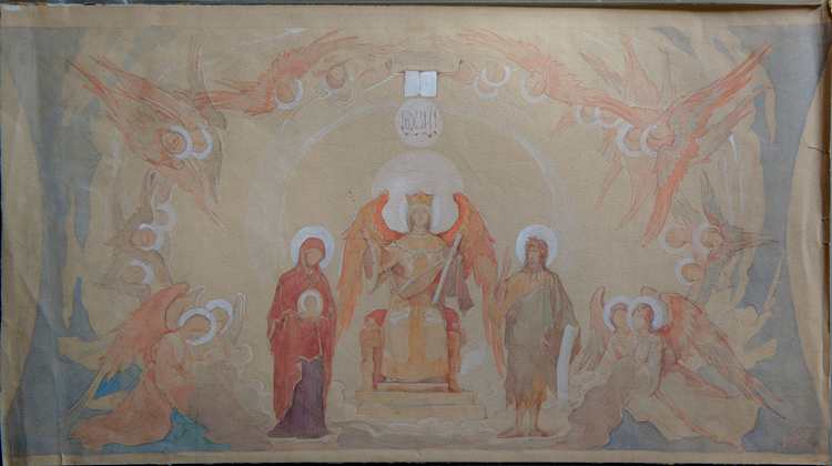 Н.А. Кошелев. Эскиз росписи неизвестного храма. Конец XIX в. Картон, масло 50x67,4.