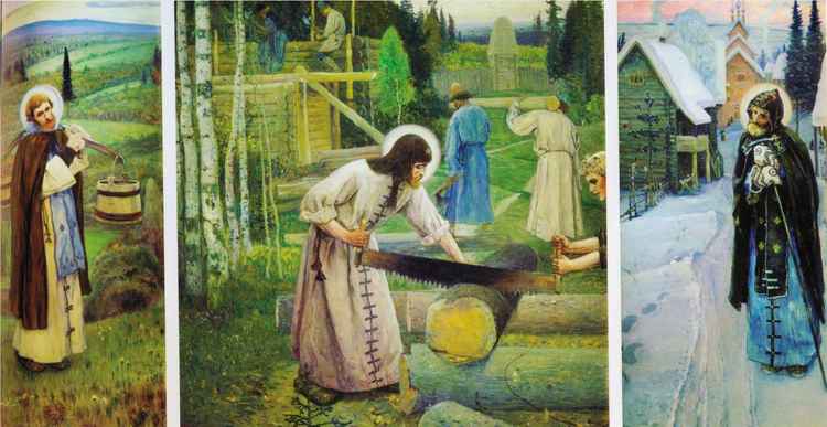 Одним из самых загадочных в «Сергиевом цикле», пожалуй, является триптих «Труды преподобного Сергия (1896–1897).