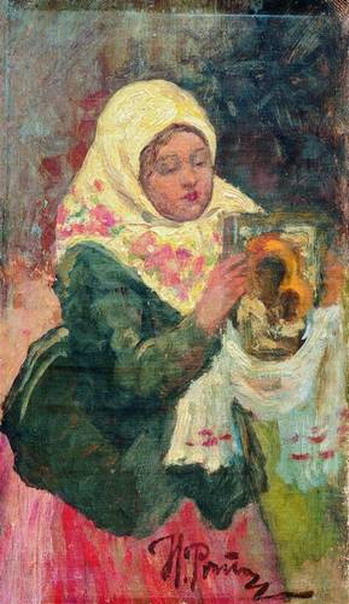![]() Этюд с иконой «Спас». И. Е. Репин. 1880-е. Этюд. Холст, масло. 30,4х33,1 см Частное собрание  |