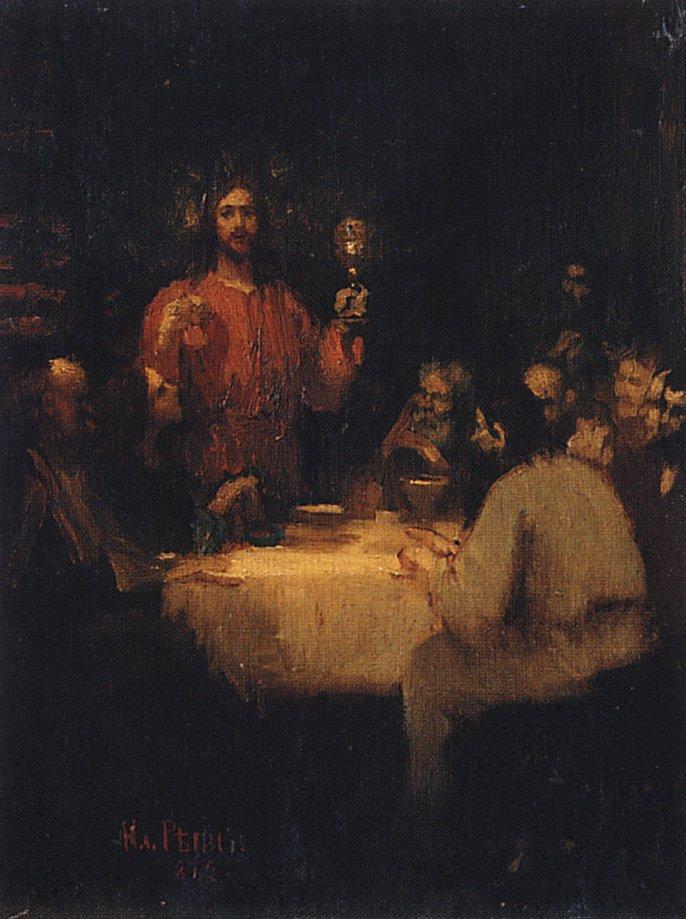 ![]() Тайная вечеря. И. Е. Репин. 1903 г. Холст, масло. 63,2х103,7 Новгородский государственный объединенный музей-заповедник, Новгород |