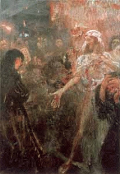 ![]() «Се, человек». И. Е. Репин. 1867 г. Холст на картоне, масло. 31х19. Частное собрание |