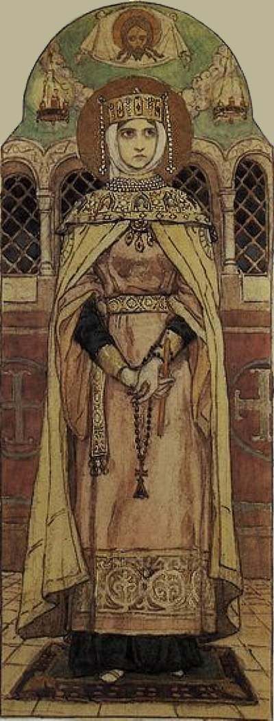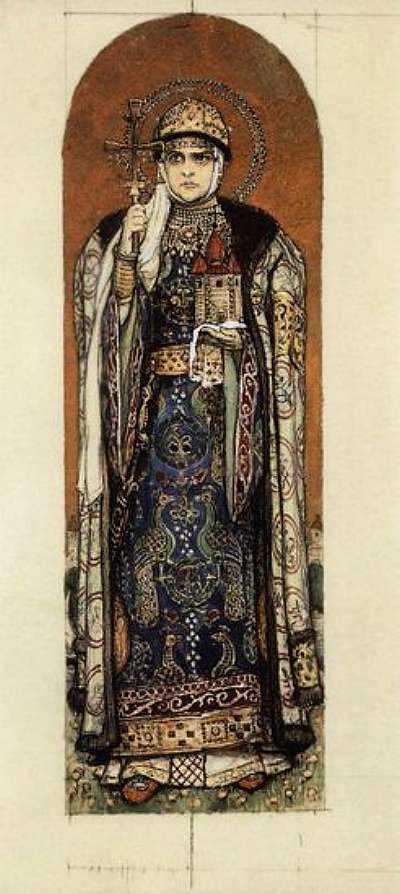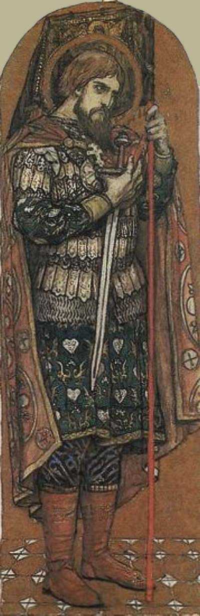 Этот опыт более всего ощущается в трактовке художником образов выдающихся исторических деятелей Древней Руси. Он стремился показать своих персонажей живыми участниками истории,пользуясь при этом летописями и житиями святых, Священным писанием, памятниками изобразительного искусства и фольклора, материалами археологических раскопок в музейных хранилищах. Воинами, отстаивающими независим ость родной земли, представлены облаченные в тяжелые доспехи Андрей Боголюбский и Александр Невский. Народные представления об умных, волевых, решительных и непреклонных правителях воплотились в образах князя Владимира и княгини Ольги.