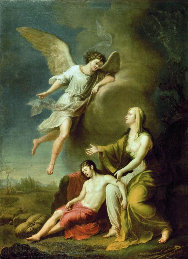 Изгнанная Агарь с малолетним сыном Измаилом в пустыне. Г. И. Угрюмов 1785