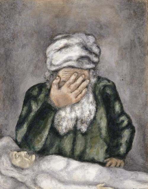 ![]() Авраам плачет о Саре. Марк Шагал. 1931 г. Бумага, гуашь, масло. 62,5x49,5 см |