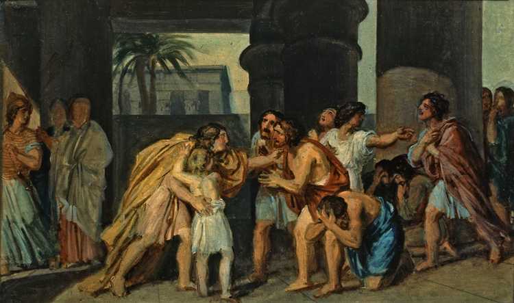 Флавицкий Константин Дмитриевич (1830-1866). Эскиз программы на большую золотую медаль 1855 года. Холст; масло, 59,5х75,5.