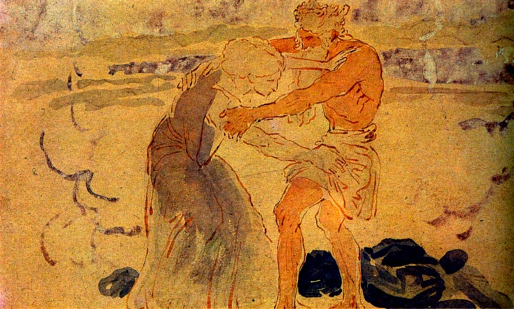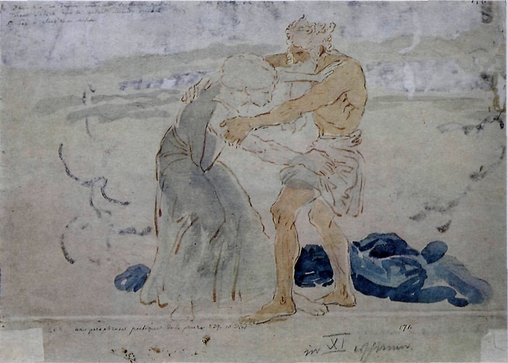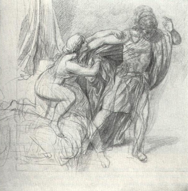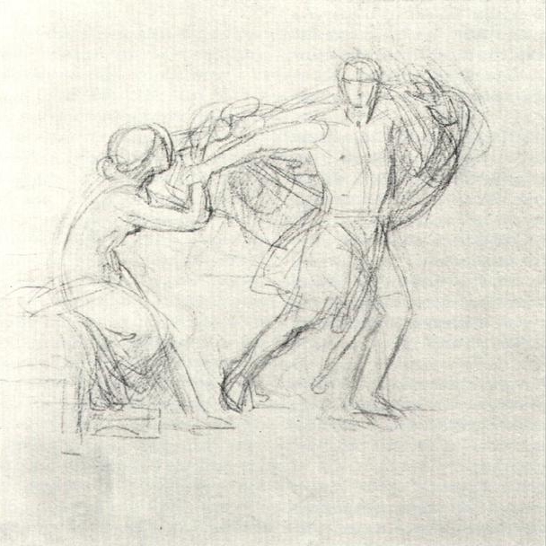 Борьба Иакова с Богом (Иаков, борющийся с Богом, Иаков не отпускает борющегося с ним ангела). А. А. Иванов. 1850-е.