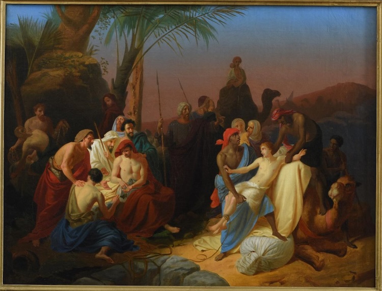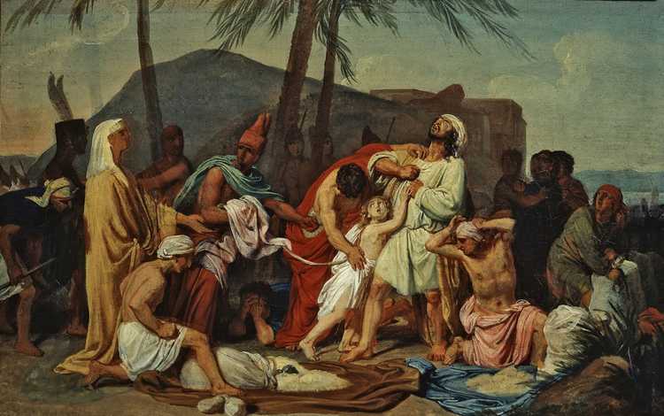 Из всех своих детей Иаков больше всего любил Иосифа и самого младшего Вениамина, которых родила ему любимая Рахиль. Остальные 10 братьев очень завидовали Иосифу и решили даже его убить, сообщив отцу, что того растерзали звери, но один из братьев остановил других от пролития братской крови, и Иосиф был брошен живым на дно колодца. В это время мимо проходил караван, идущий в Египет, и братья решили продать купцам ненавистного им Иосифа. Сделка принесла им 20 сребреников. Одежду Иосифа братья испачкали кровью козленка и отослали отцу. Тот был безутешен и долго горевал, уверенный, что любимого сына растерзал зверь. Тем временем караван с горько плачущим Иосифом приблизился к Египту.