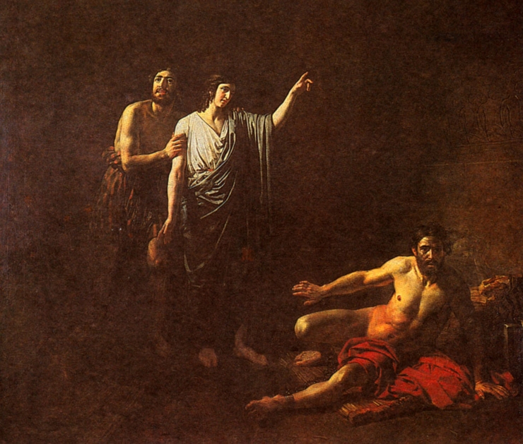 Эта картина была для Александра Иванова выпускной в Петербургской Академии Художеств. Получение за нее золотой медали означало четырехлетнюю поездку в Италию за казенный счет. Но молодой художник пошел на риск. В своей картине он применил придуманный Караваджо прием светотени. А в Академии Караваджо считали разрушителем основ классической гармонии, его искусство — бунтарским, которому не место в строгих стенах учебного заведения. Иванов прекрасно знал о вкусах Академии, ведь его отец был здешним профессором, и, тем не менее, решился писать вопреки им.