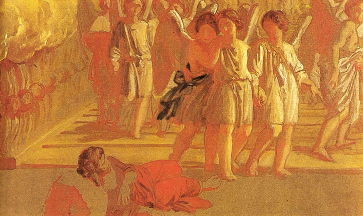 ![]() Ангелы возвещают небесную кару Содому и Гоморре. Николай Петрович Ломтев. 1845 г. Государственная Третьяковская галерея, Москва |
