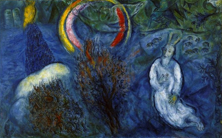 Однажды Моисей ушел со стадами далеко и был у горы Хорива. Там он увидел терновый куст, который горел и не сгорал, то есть был объят пламенем, а сам не горел. Моисей решил подойти ближе и посмотреть, отчего куст не сгорает. Тут он услышал голос из средины куста: «Моисей! Моисей! Не подходи сюда; сними обувь с ног твоих, потому что место на котором ты стоишь, святая земля. Я Бог Авраама, Исаака и Иакова».