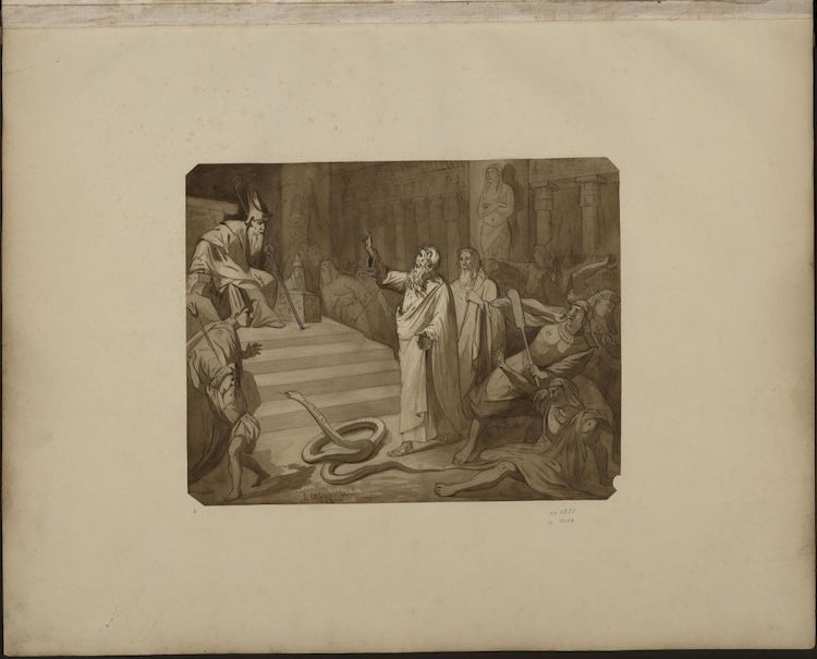 Моисей превращает жезл Аарона в змея. (2-ой лист из альбома).