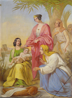 Сюжет из Ветхого Завета, повествующий о чудесном нахождении младенца Моисея дочерью египетского фараона в тростниках Нила.