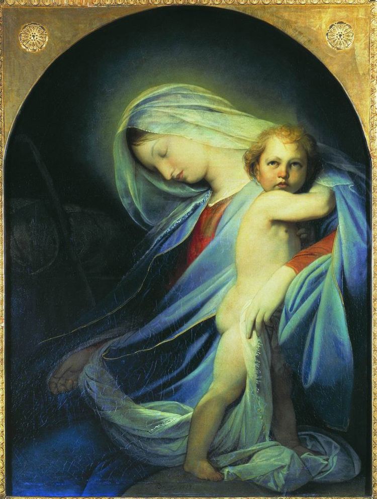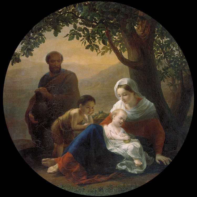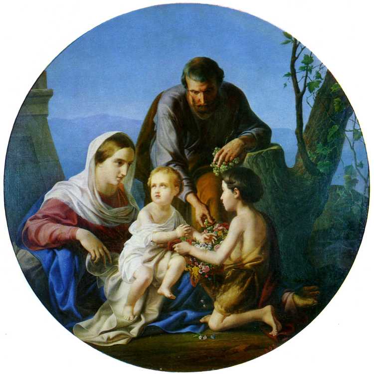 Работа «Святое семейство» (1856) выполнена в подражание ренессансным художникам. Формат «тондо» (круга) подчиняет себе композицию, выдержанную в округлых линиях. Каркасом для построения всей группы фигур является равносторонний треугольник и пирамида. Иосиф подносит младенцу Иисусу кисть винограда – символ Христа («Я есмь истинная виноградная лоза, а Отец Мой – виноградарь»... (Иоан. XV, 1-6).