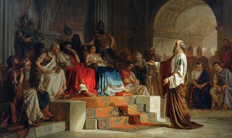 Апостол Павел перед судом иудейского царя Агриппы и римского проконсула Феста.
