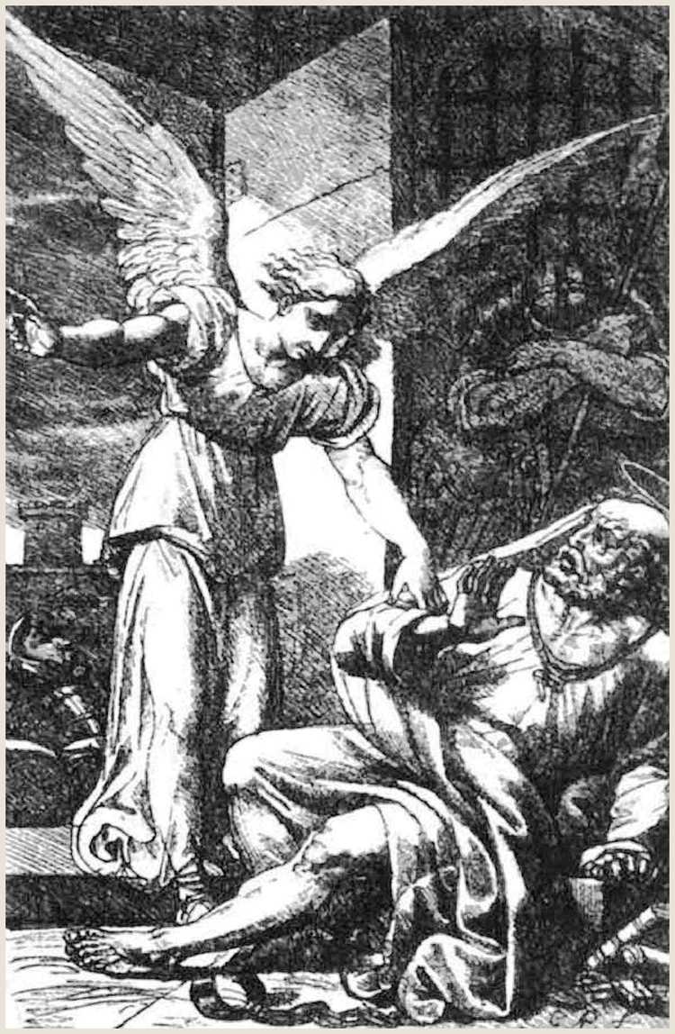 В 42 году по Р. Х. во время гонения на христиан св. апостол Петр был закован в цепи и должен был предстать перед судом. Ангел чудесным образом освободил его от оков и темницы.