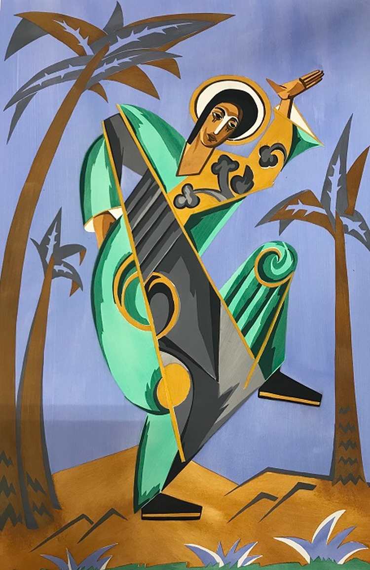 Н.С. Гончарова.  Лист из альбома «Литургия». 1927. Бумага, гуашь, пошуар. 75,5 × 56,2.