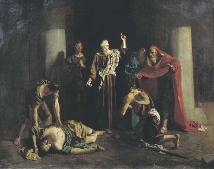 Литография с картины В. И. Сурикова "Апостол Павел объясняет догматы веры в присутствии царя Агриппы" (1875 г. Государственная Третьяковская галерея).