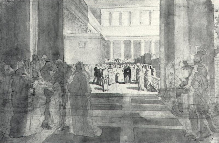 Эскиз росписи аттика над большими южными воротами Исакиевского собора в Петербурге.
