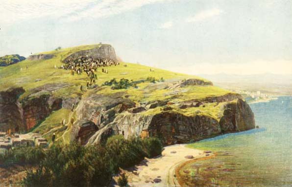берег моря между Вифсаидой и Капернаумом, на вершине горы, под отвесной скалой,