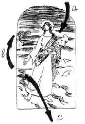 стрелка © показывает движущуюся вновь на зрителя плоскость, которая при