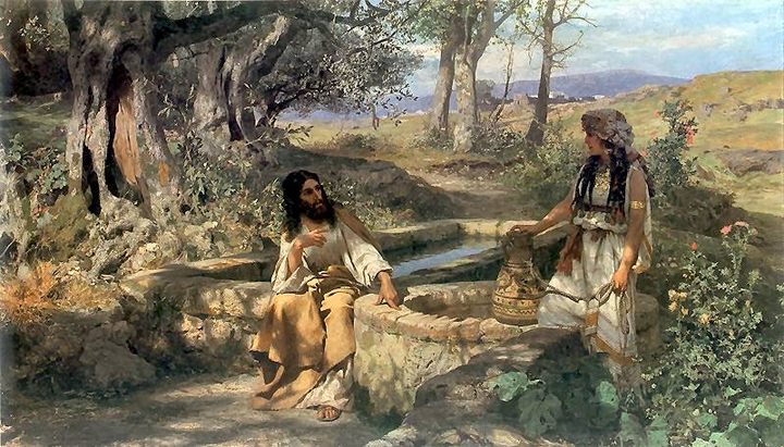 Возвращаясь из Иудеи в Галилею, Иисус Христос с учениками Своими проходил через страну самарянскую, мимо города, называемого Сихарь (по древнему название Сихем). Перед городом с южной стороны был колодец, вырытый, по преданию, патриархом Иаковом. Иисус Христос сел отдохнуть у колодца, а ученики Его пошли в город, чтобы купить там пищи.