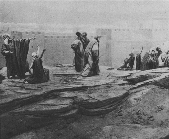 У подножья Масличной горы и горы Злого Совещания раскинулся Иерусалим, некогда город Иевусеев, окончательно покоренный царем Давидом, сделавшим его столицей своего царства. Царь Соломон разукрасил и возвеличил Иерусалим, но затем тот великий город становится попеременно добычей Ассириян, Египтян и Вавилонян, пока наконец по приказанию царя Вавилонскаго Навуходоносора он не превращается в печальную груду развалин. Отстроенный вновь по приказанию царя персидского Кира, он возвысился в правление Ирода Великого. Ирод, назначенный римлянами правителем Иудеи, как чужеземец и присвоитель царской власти, возбуждал ненависть в евреях.